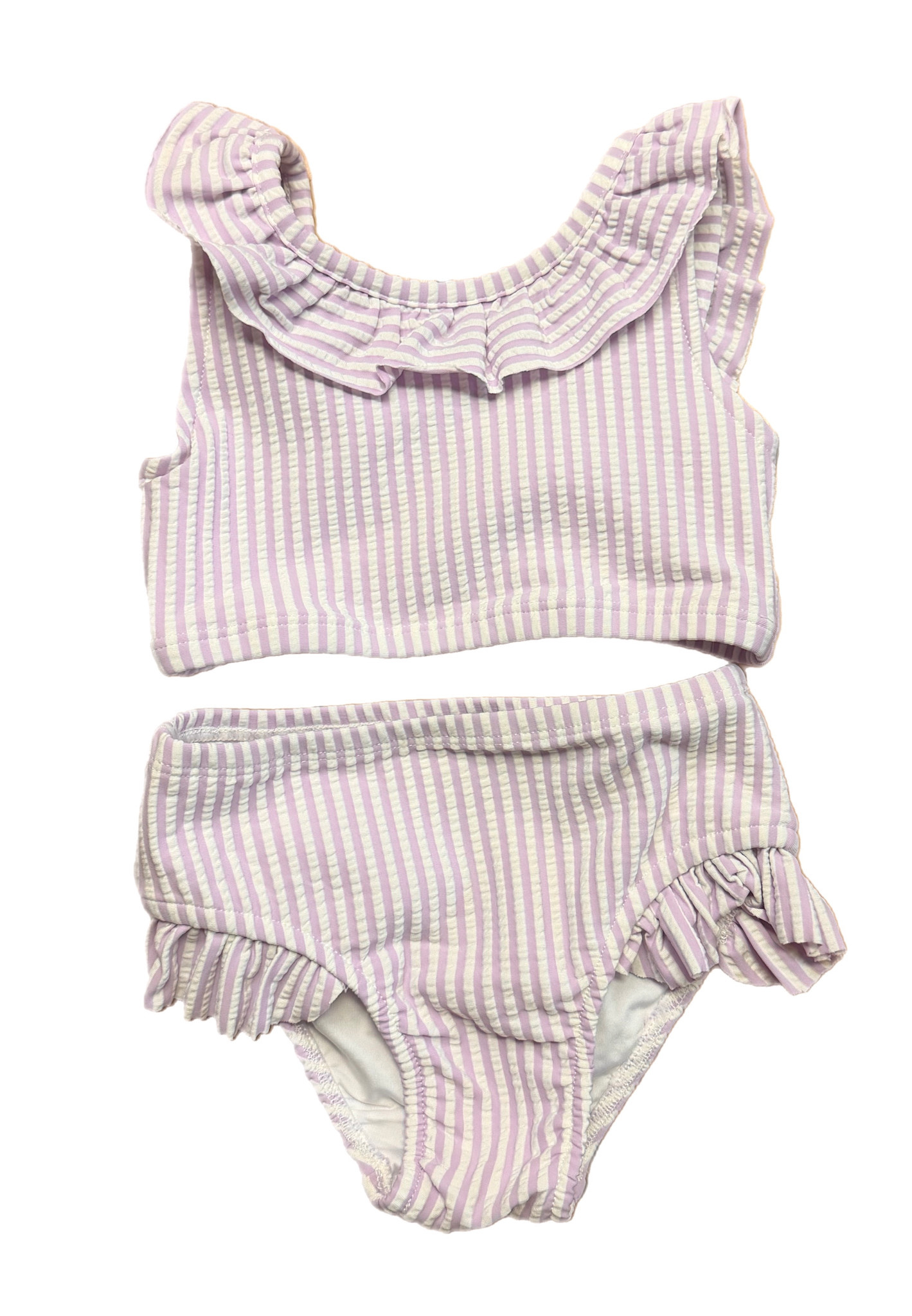 2 Piece Lavender Striped Ruffled Girl Swim Suit