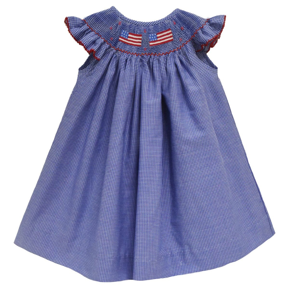 Vive La Fete 4th of July Smocked Royal Gingham Angel Wing Girl Bubble