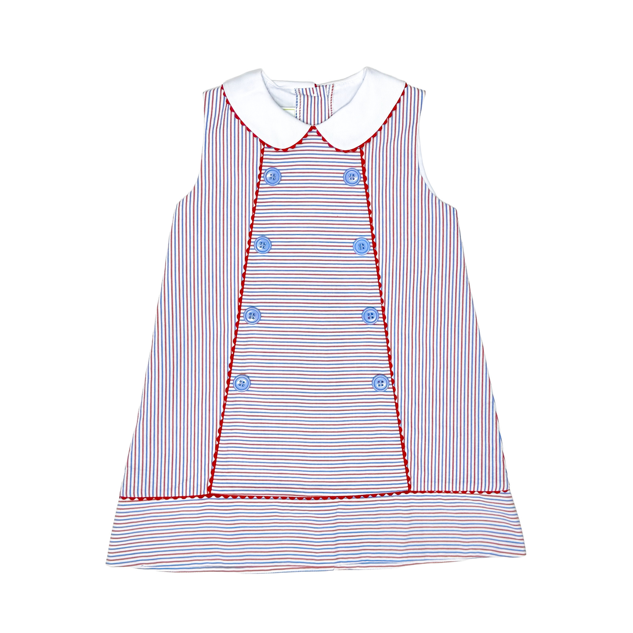 Airplane A-line Dress Patriotic Stripe Seersucker
