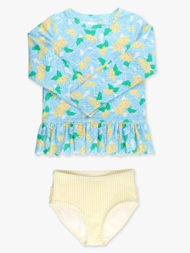 *PRE-ORDER*Blooming Basket Scallop Hem Long Sleeve Rash Guard 2-Piece, with Signature Rear Ruffles