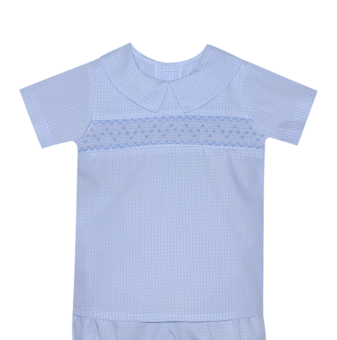 Blue Williams Windowpane Smocked Short Set
