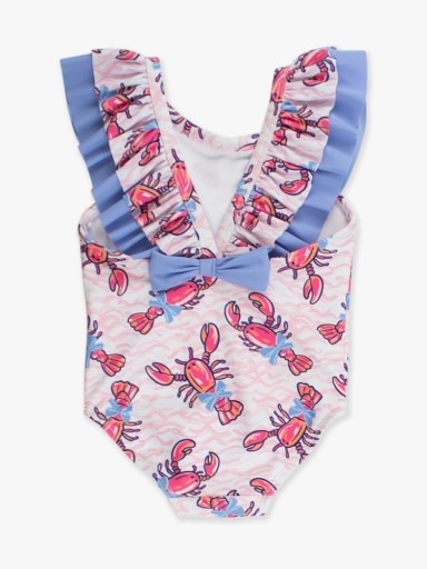 Pink Lobster Lagoon Bow V-Back One Piece Swimsuit