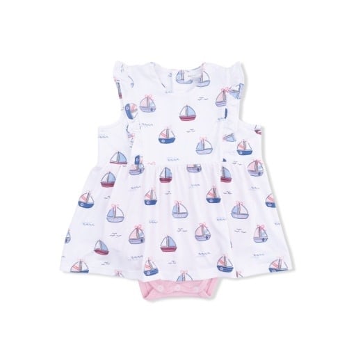 Bubbly Sailboats Pink - Ruffle Bodysuit Dress