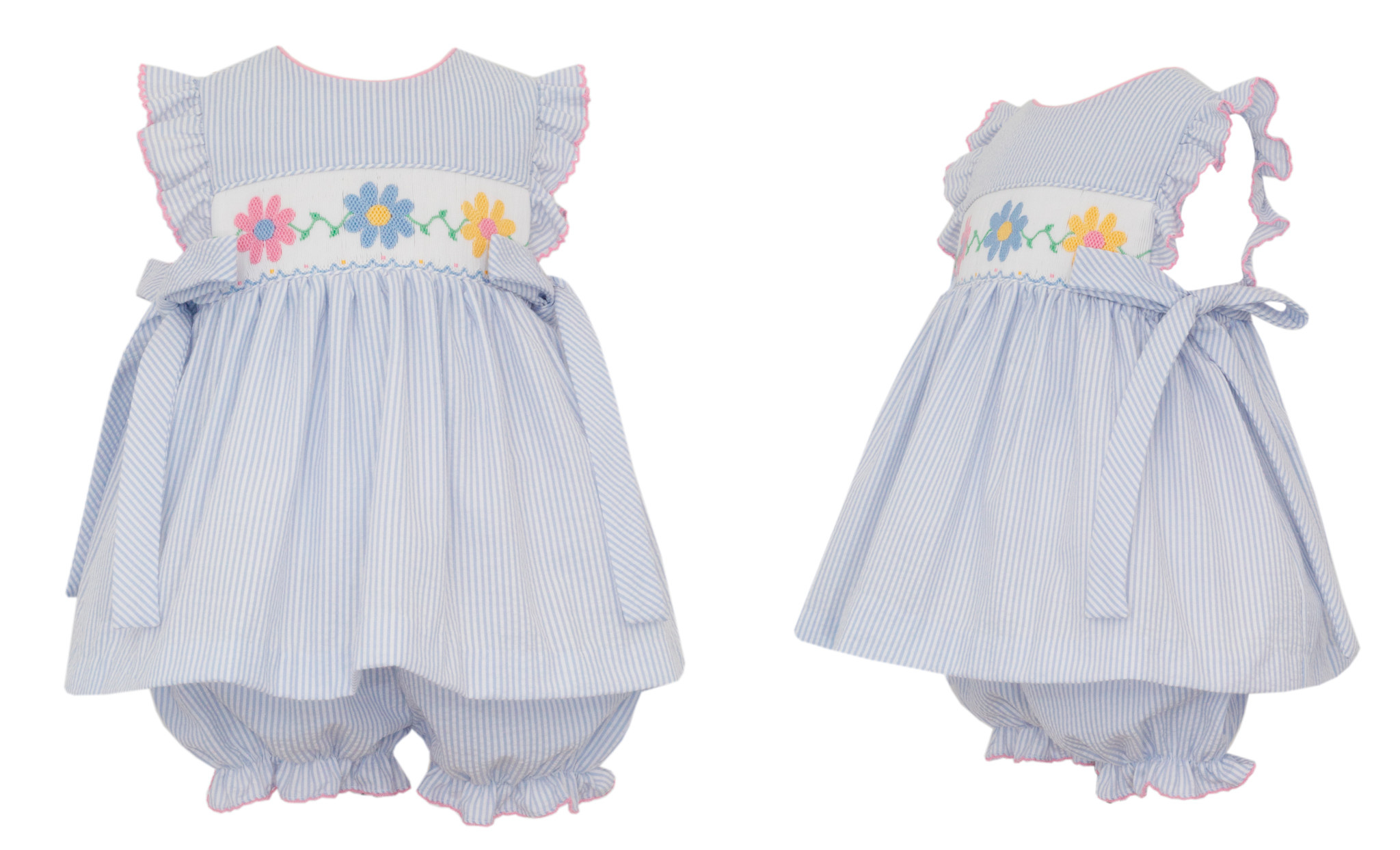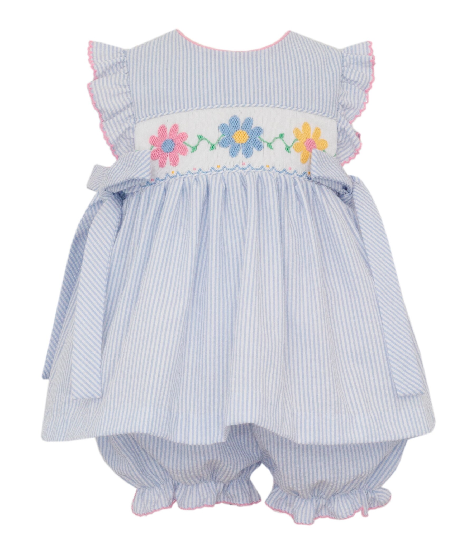 *PRE-ORDER*Daisies Lt Blue Seersucker Bloomer Set w/Side Bows