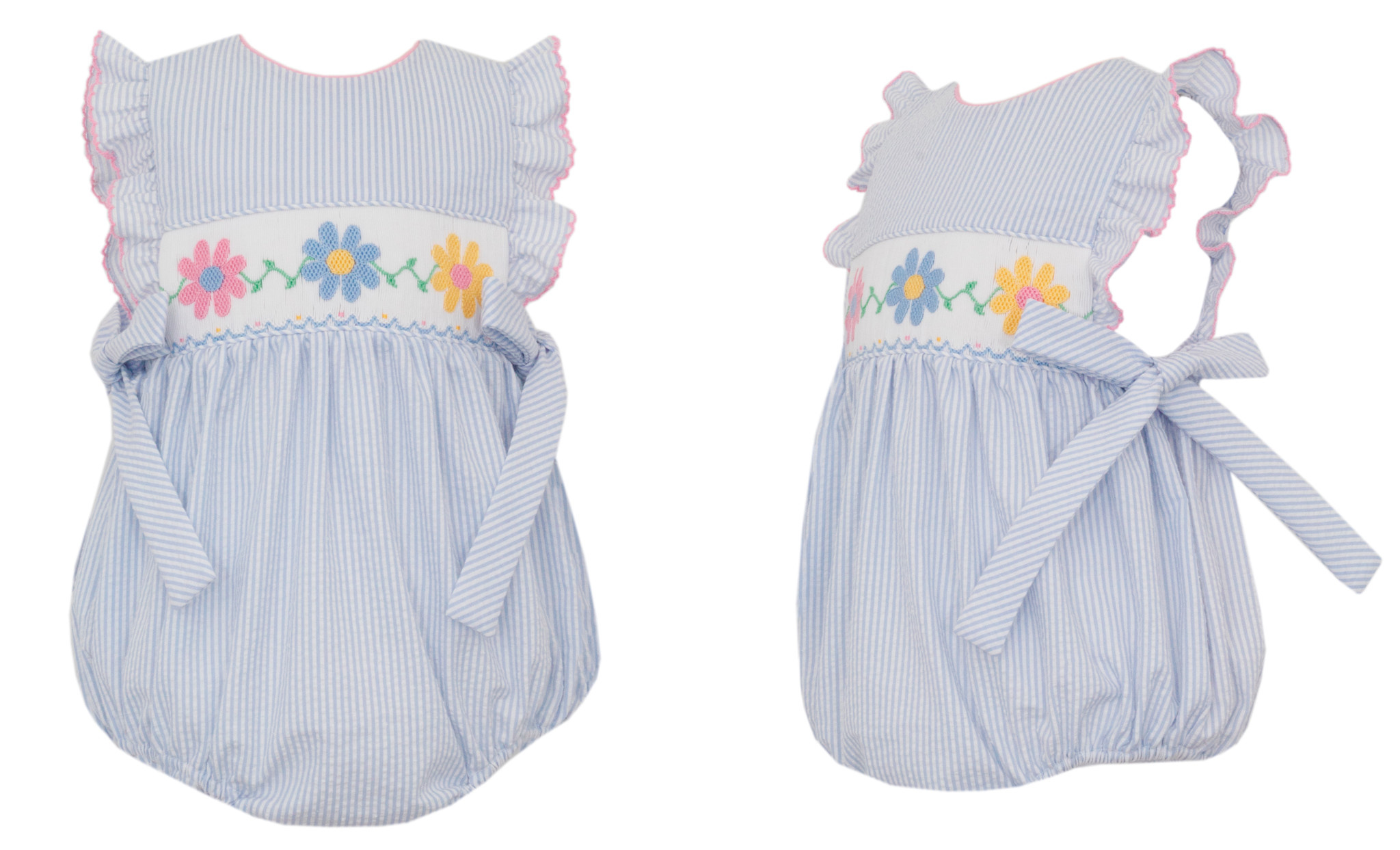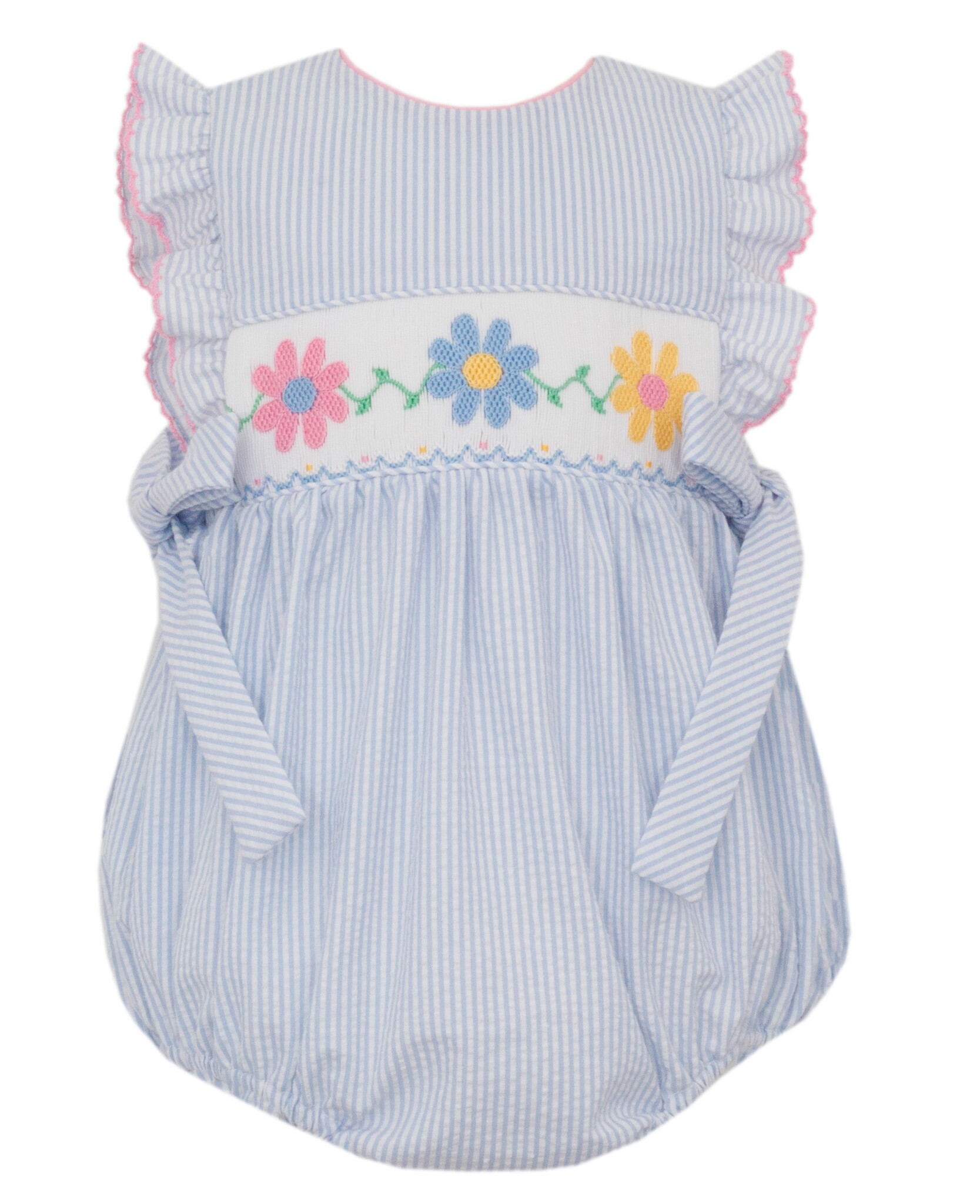 *PRE-ORDER*Daisies Lt Blue Seersucker Sleeveless Bubble w/Side Bows