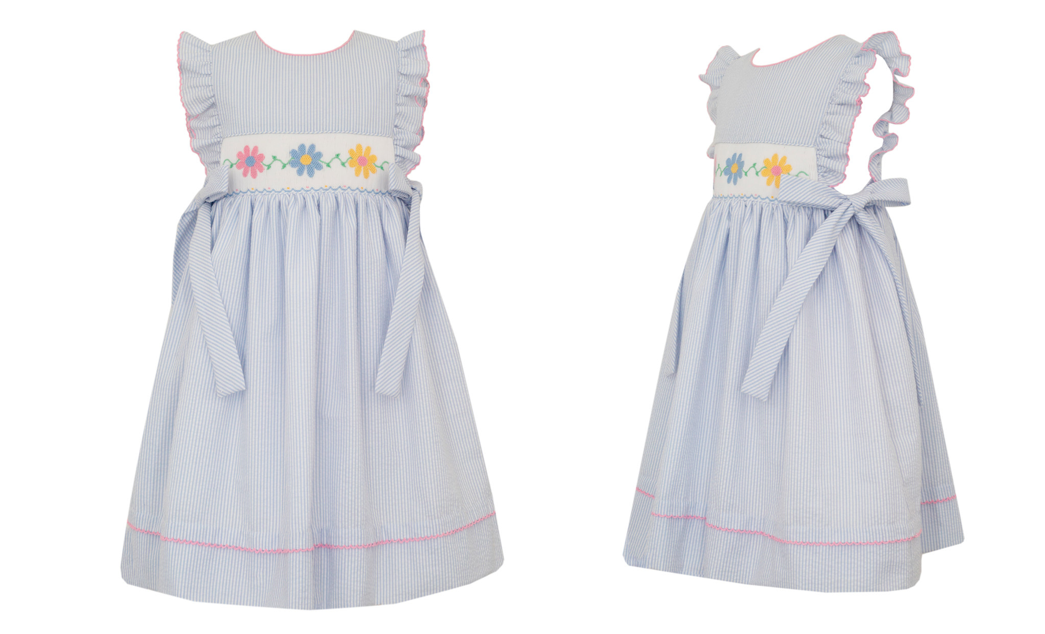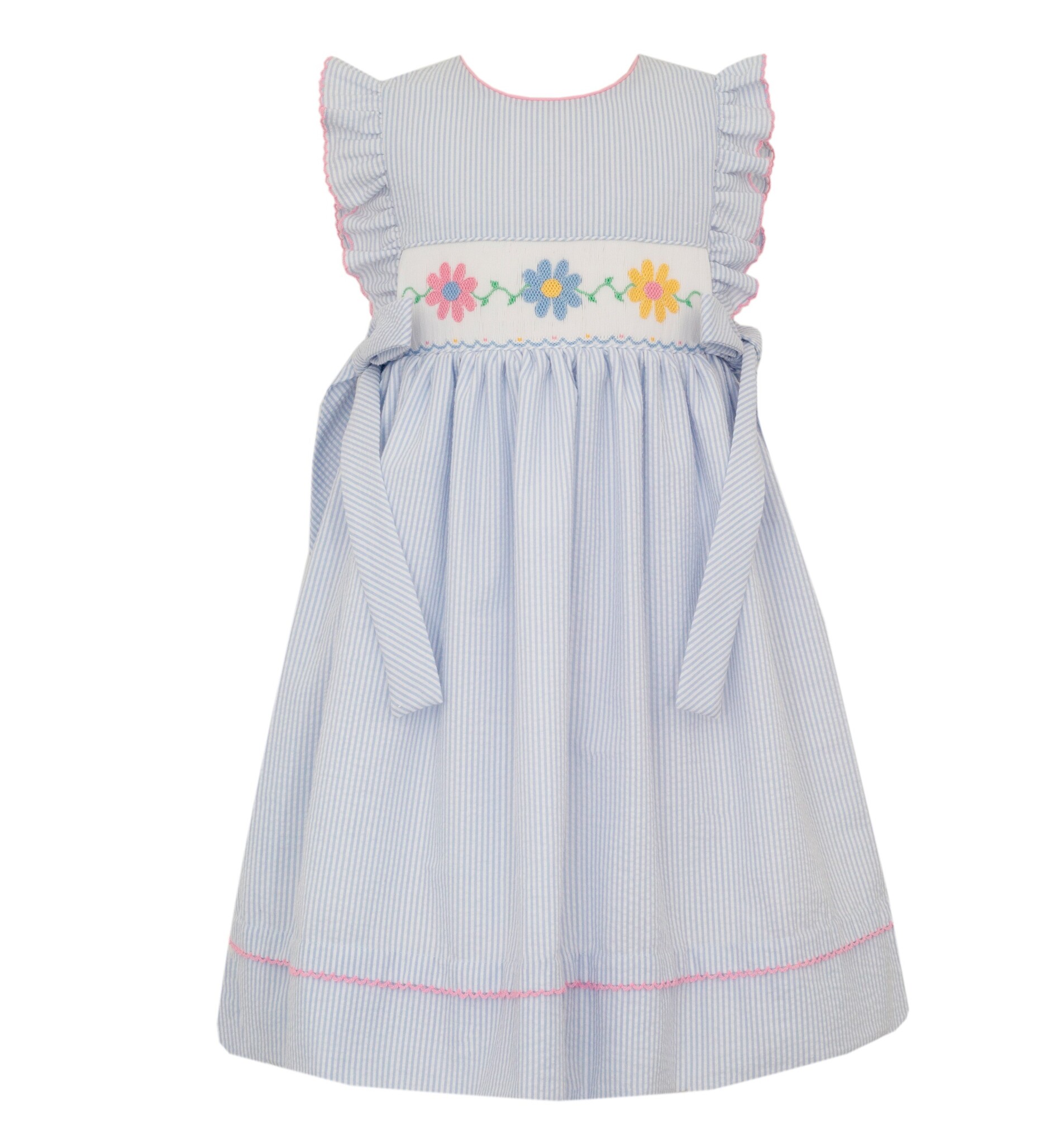 Daisies Lt Blue Seersucker Sleeveless Dress w/Side Bows