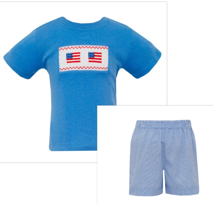 *PRE-ORDER*Flags Periwinkle Blue Gingham Boy's Short Set