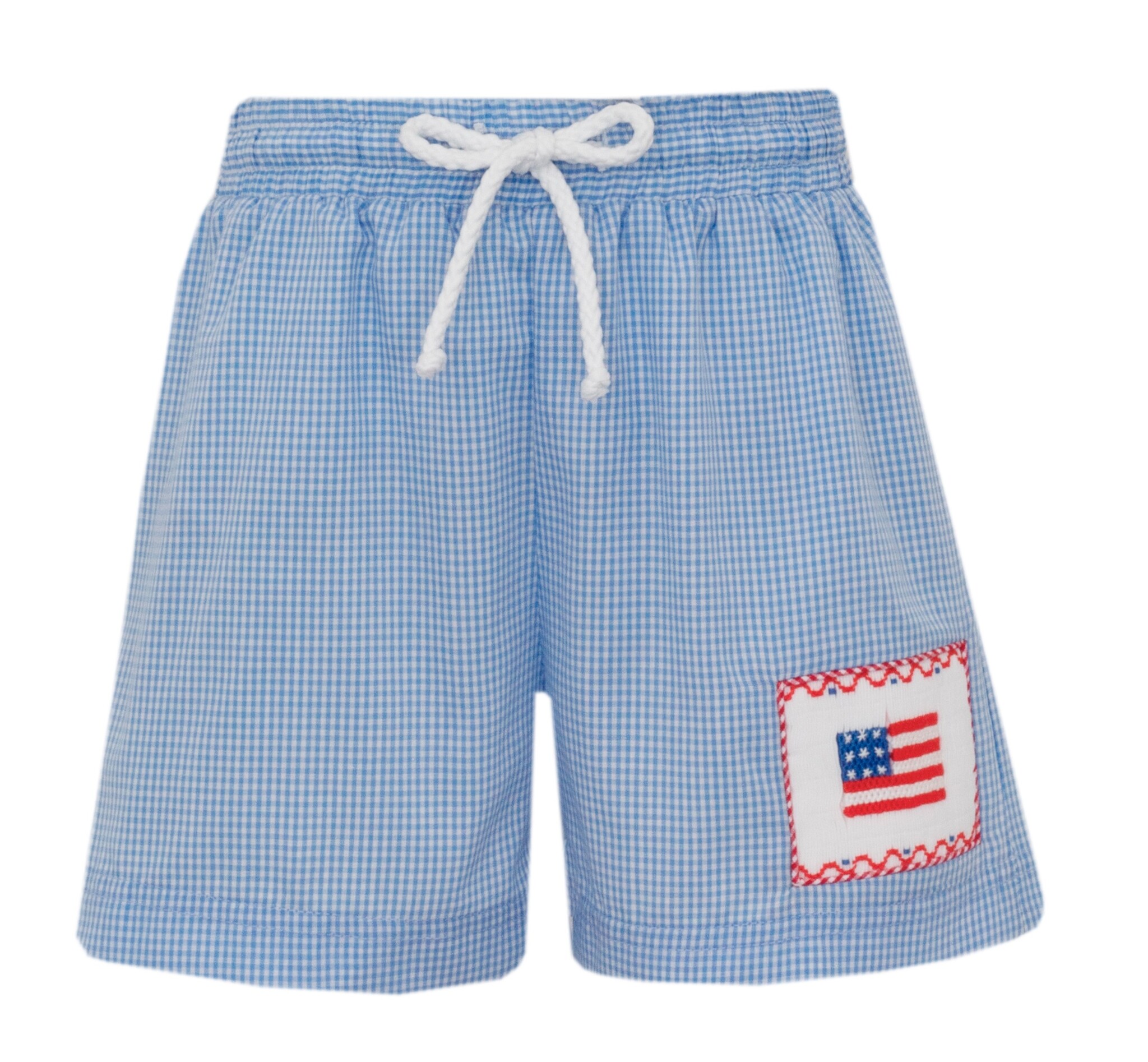 *PRE-ORDER*Flags Periwinkle Blue Gingham Boy's Swim Trunks