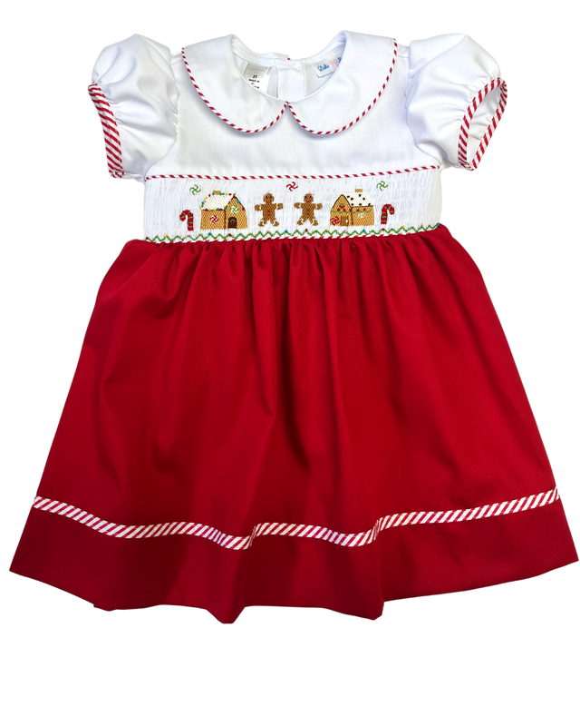 Lulu Bebe Gingerbread House Smocked Waist Bubble