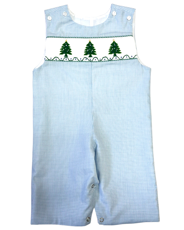 Lulu Bebe Green Christmas Tree Smocked Boy Pleated Bubble