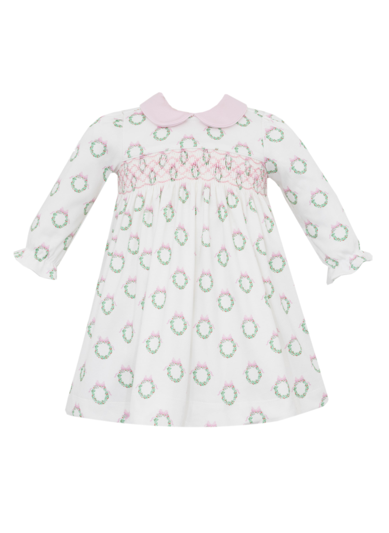 Petit Bebe Holiday Pink Wreath Printed Knit Bishop Bloomer Set
