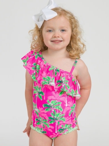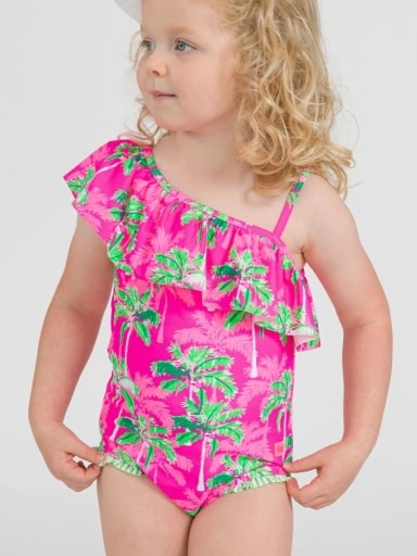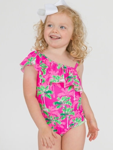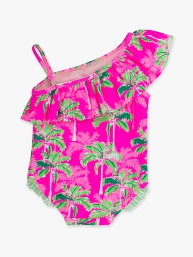 Neon Palm Paradise One Shoulder Ruffle One Piece