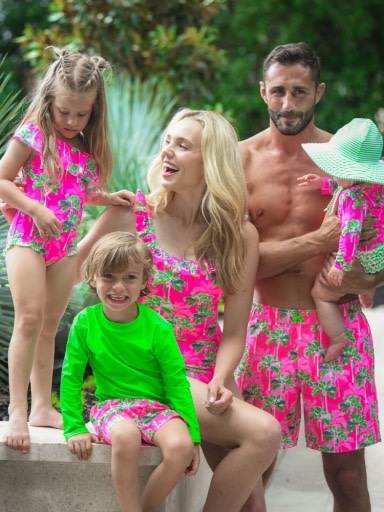 RuffleButts + RuggedButts Neon Palm Paradise Swim Trunks
