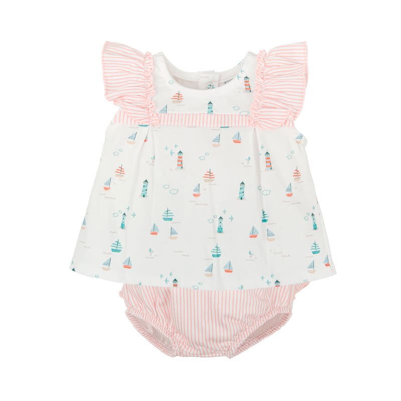 Sailboat and Lighthouse w/ Pink Stripe Diaper Cover Set