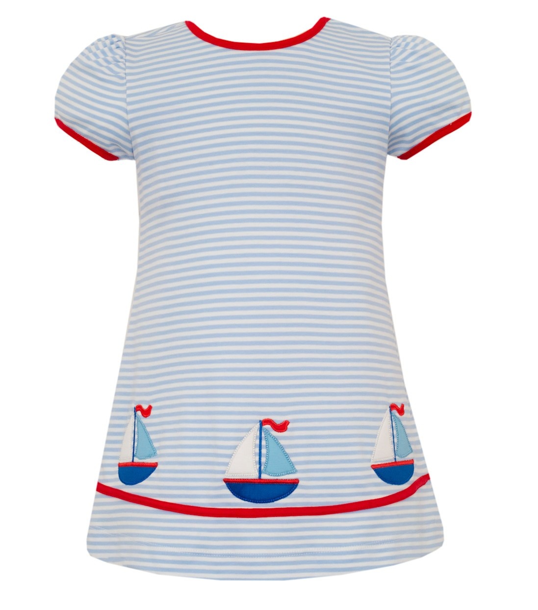 *PRE-ORDER*Sailboats Blue Knit Stripe A-line Dress