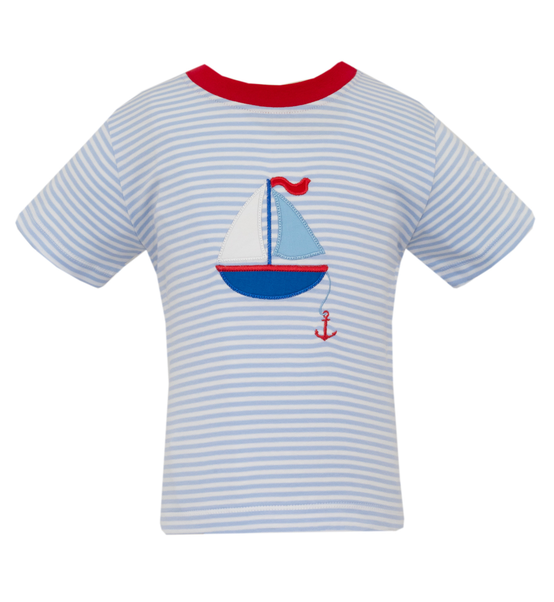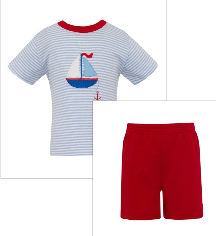 *PRE-ORDER*Sailboats Blue Knit Stripe Boy's Short Set