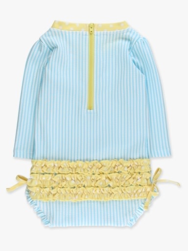 Seersucker Long Sleeve One Piece Rash Guard Swimsuit, with Signature Rear Ruffles