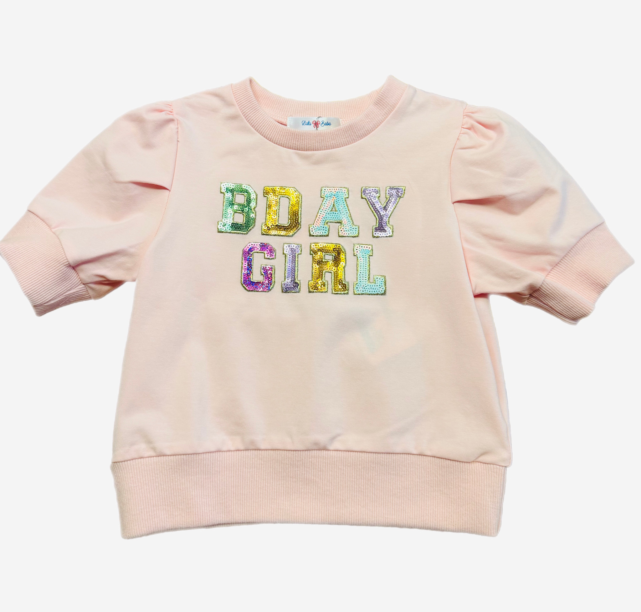 Sequin Bday Puff Shirt Pink