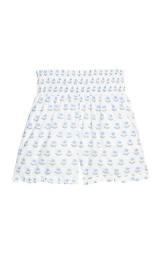 Shirred Ruffle Shorts - Blue Tulip Block Print