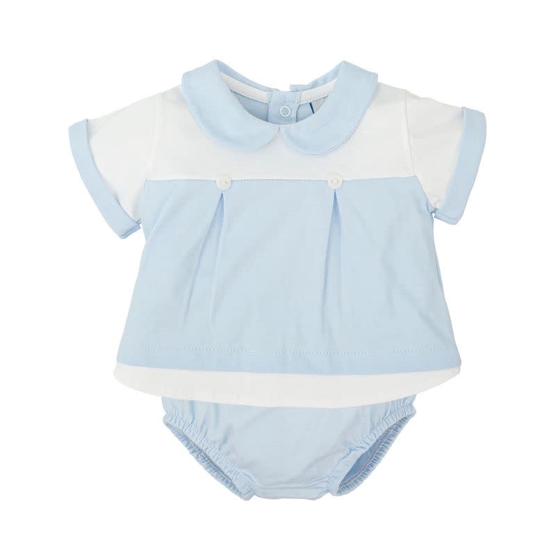 White and Blue Diaper Cover Set w/ Blue Striped Collar