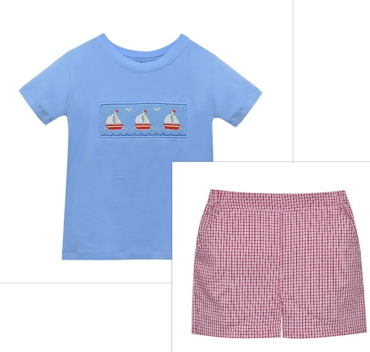 Smocked At Sea Blue Houston Short Set