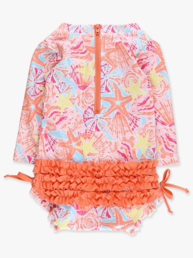 RuffleButts + RuggedButts *PRE-ORDER*Sunset Seashells Long Sleeve Zipper Rash Guard 2-Piece