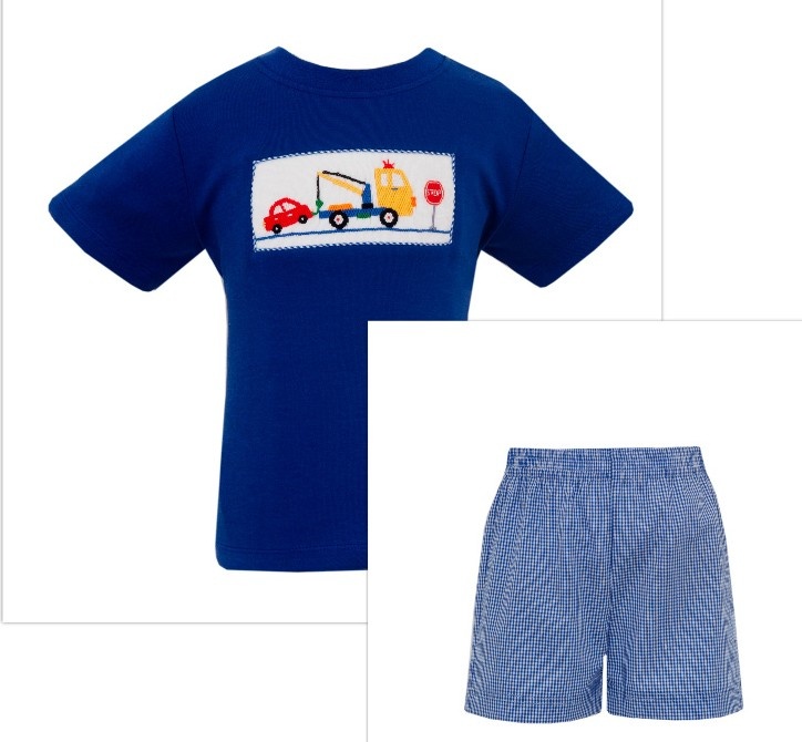 *PRE-ORDER*Tow Truck Royal Gingham Short Set