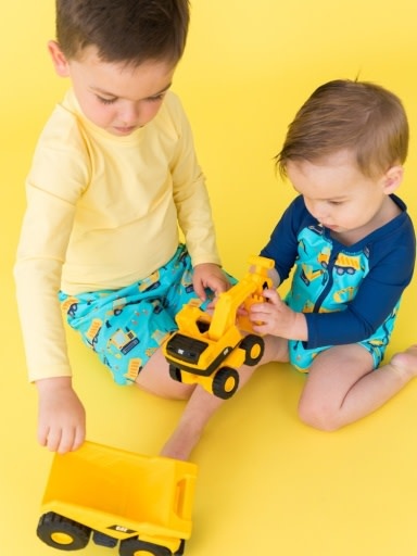 RuffleButts + RuggedButts Under Construction Boys Long Sleeve One Piece Rash Guard