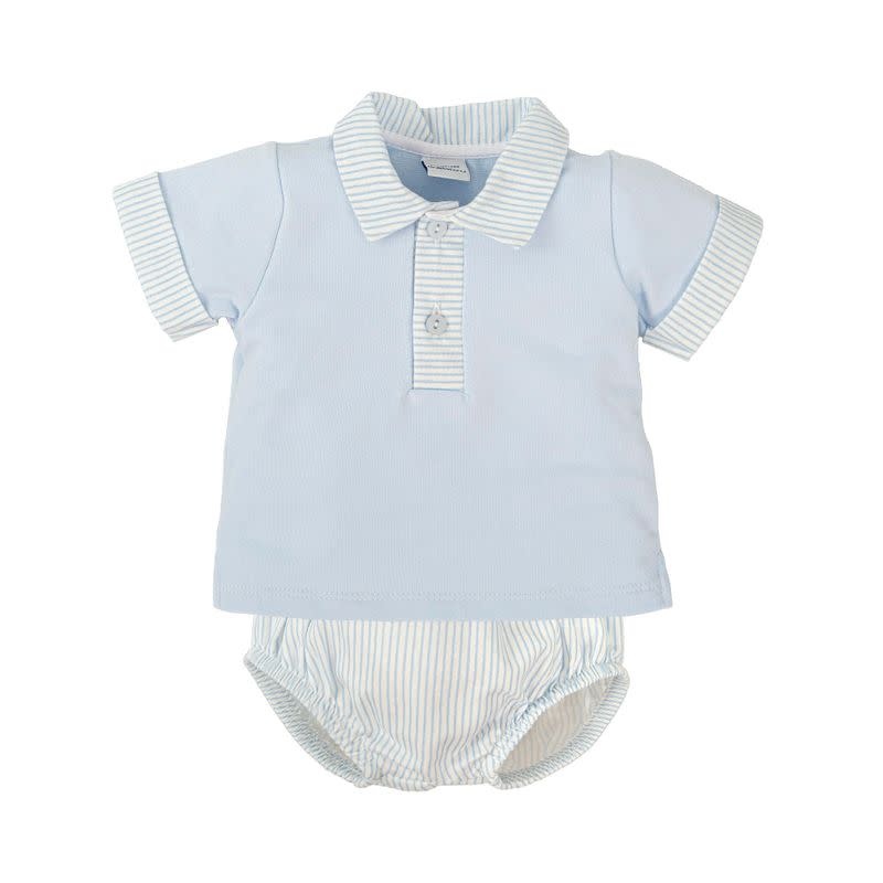 White and Blue Diaper Cover Set w/ Blue Striped Collar